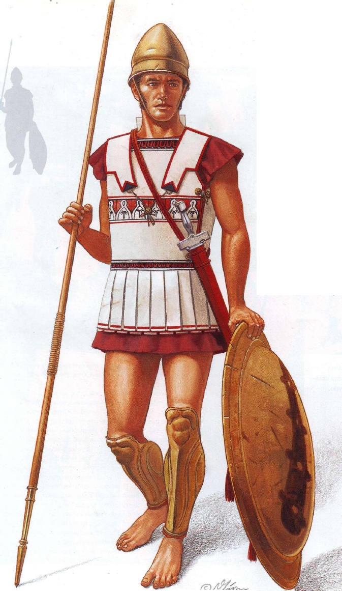 Στο δεξί χέρι κρατούσαν το δόρυ και στο αριστερό την ασπίδα, παραταγμένοι κατά στοίχους ώστε να προφυλάσσονται μεταξύ τους κατά την διάρκεια της μάχης. Στα άκρα της φάλαγγας και ιδιαίτερα στις γωνίες, τοποθετούνταν οι πιο ρωμαλέοι οπλίτες, γιατί αυτά τα σημεία έμεναν συνήθως ακάλυπτα.