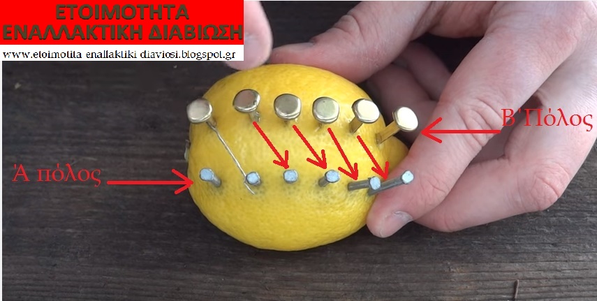 Το λεμόνι έχει μέση τάση 5volt οπότε αγκίζοντας τους ακροδέκτες έχετε μπορείτε να δημιουργήσετε εύκολα σπινθήρα.